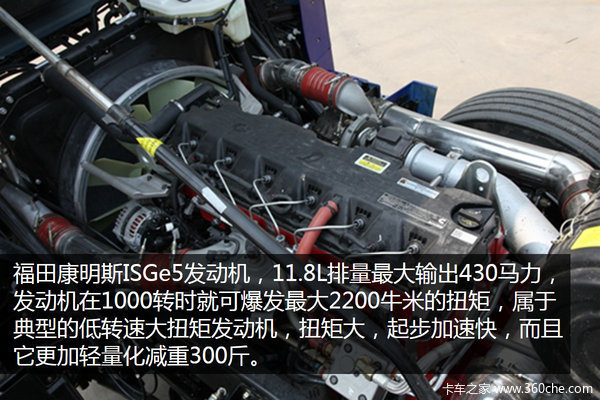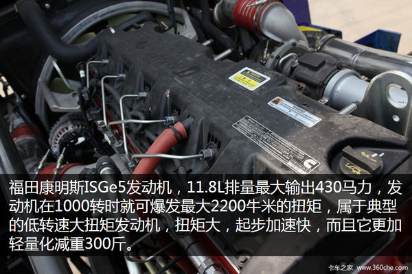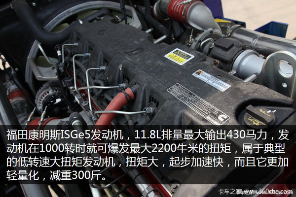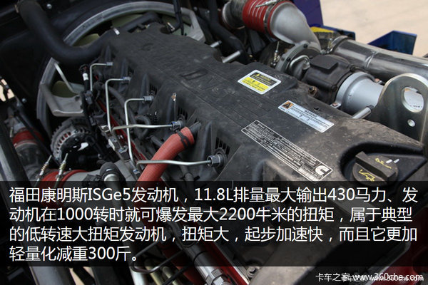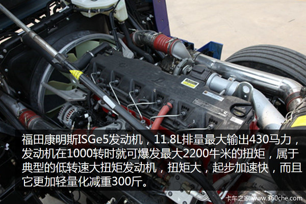 动力方面,欧曼GTL超能版搭载的是福田康明斯ISGe5发动机,11.8L排量最大输出430马力,发动机在1000转时就可爆发最大2200牛米的扭矩,属于典型的低转速大扭矩发动机,扭矩大,起步加速快,而且它更加轻量化,减重300斤。