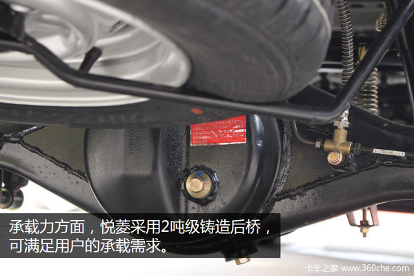 承载力方面,悦菱采用2吨级冲焊后桥,同时匹配型号为175/70R14LT的好运牌钢丝胎,可满足用户的承载需求。另外,用户还可根据载重需求选择185的轮胎。