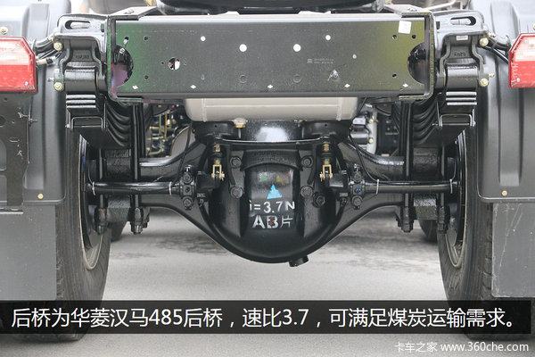 变速箱采用华菱自主的索达12SDC1851直接挡变速箱,加装有换挡助力器,变换档位更加轻松省力。后桥为华菱汉马485后桥,速比为3.7,重量轻,承载性好。