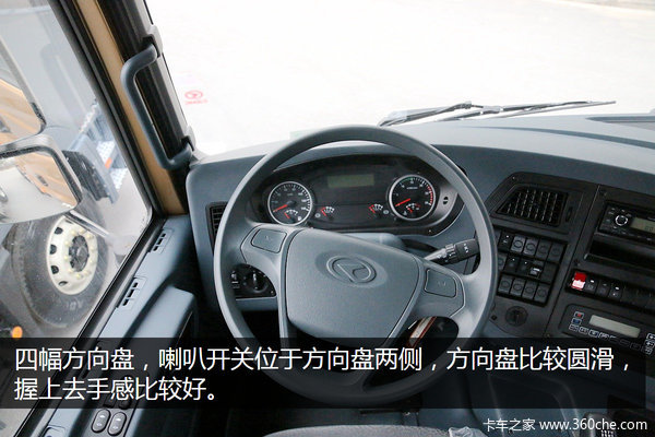 四幅方向盘,喇叭开关位于方向盘两侧。仪表采用2大4小指针、中间显示器设计,结构布局比较合理,行驶中车辆各项数据清晰呈现。