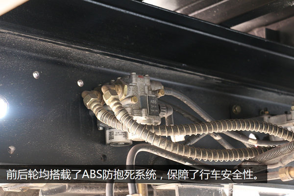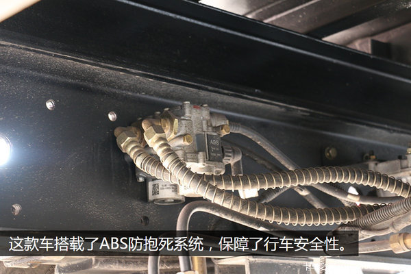 这台车的后桥速比是4.875,搭载了ABS防抱死系统,能够一定程度上保障行车安全性。这台车装配的轮胎是三角牌,规格为9.00R20。