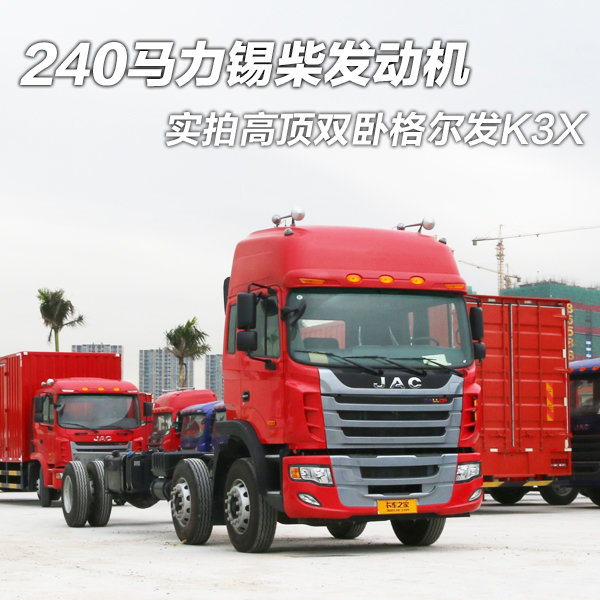 这次要介绍的是江淮格尔发的K3X高顶车型,该车搭载了锡柴的240马力发动机,与之搭配的是法士特9档变速箱。这款格尔发K3X的6X2载货车,前两桥为转向桥。该车的推出主要是针对中长途运输的客户。