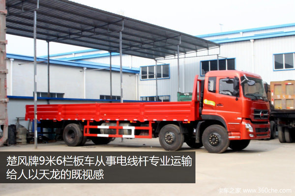 由于他运输的电线杆一般长度超过10米,电线杆本身重量较大。而且经常进入工地和乡村公路行驶,对整车的载重量、通过性都是一种考验。南方用户的6x2载货车选择东风天龙的较多,为了图便宜,他选择了楚风牌“天龙”。基本上是借鉴参考同款天龙的配置。