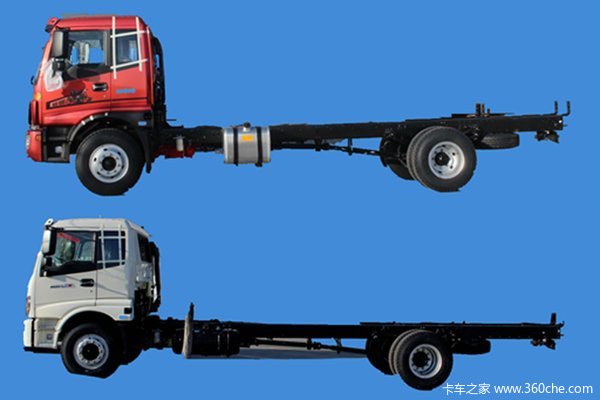 上面是欧马可5系,下面是宽体奥铃车型。奥铃的前脸和欧马可明显不同,欧马可采用铝合金油箱,奥铃采用塑料油箱。