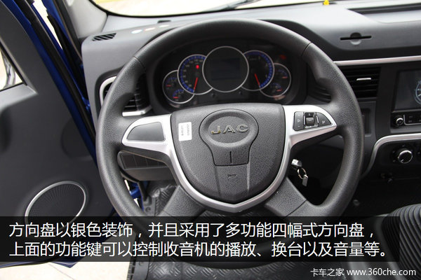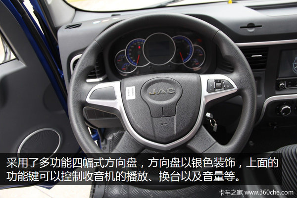 该车采用四幅式多功能方向盘,上面的功能键可以控制收音机的播放、换台以及音量。而且四幅式方向盘在行车过程中能够为驾驶员提供更好的操控舒适性。