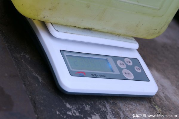 由于使用的塑料油桶具有一定的误差,测试人员还准备了一台电子称,通过称重,对所要消耗的燃油进行更加准确的计算,这样便可以更加直观了解怠速情况下燃油消耗的情况。