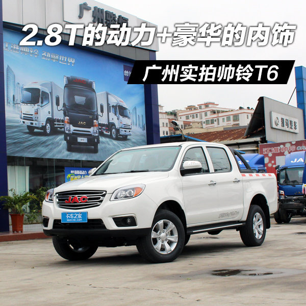 来卡车之家App【卡车之家 原创】江淮汽车这两年在乘用车和商用车都取得了不错的成绩,之前的皮卡产品也有不少,比如说江淮K3、江淮K5、瑞铃乃至征途等。在2015年,江淮发布了旗下新款皮卡帅铃T6,帅铃T6无论是从外观造型还是内部配置,都在向舒适化、家用化和高端化发展。近日,小编得知江淮帅铃T6现车已经到达广州骏恒汽车有限公司(帅铃皮卡店),目前该车在经销商处的报价为97800元。