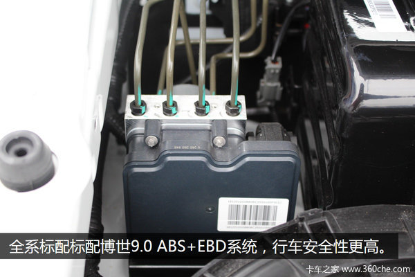 江淮帅铃T6采用前轮碟刹制动和后轮鼓刹制动,并且全系标配博世9.0 ABS+EBD(电子制动力分配)系统,制动性能更好,日常行车安全性更高。