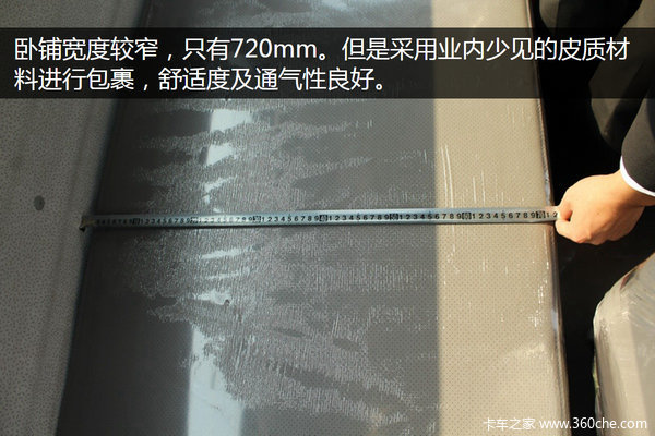 卧铺同样是贴心之作,虽然宽度只有720mm,但是与座椅一样全部由皮质材料包裹,舒适度及透气性良好,并且较传统的布艺卧铺相比,较为容易清理。