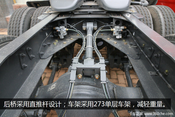 后桥同样采用少片簧设计,在不减少承载性的同时,降低自身重量。车架采用273单层车架,大幅度的减轻车辆自重,并且不降低车辆的承载性能。