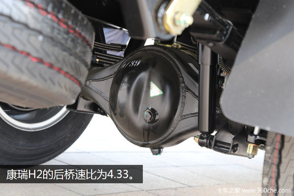 值得注意的是,康瑞K2采用了后双胎的形式,相比于单薄的后单胎具有更强的承载力和高速工况下的车身稳定性和操控性。