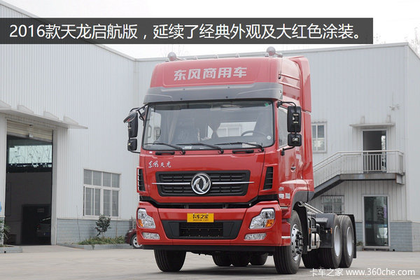 2016款东风天龙牵引车 ,依然延续了天龙启航版的外观和大红色涂装,经典的外观在路上,辨识度很高。