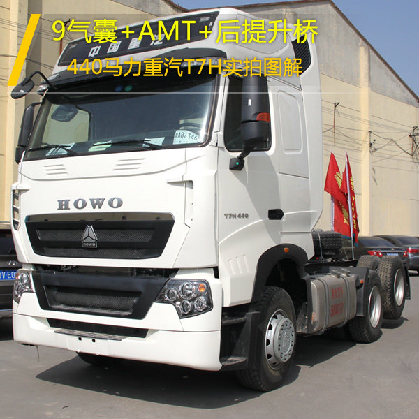 这款T7H采用的是重汽MC11.44-40的发动机,16档的AMT变速箱驾驶员操作起来更加省力,该车还采用了9气囊后桥可提升设计,减少了货物的颠簸;该车是专为高效物流运输以及甩挂运输而设计的一款产品。