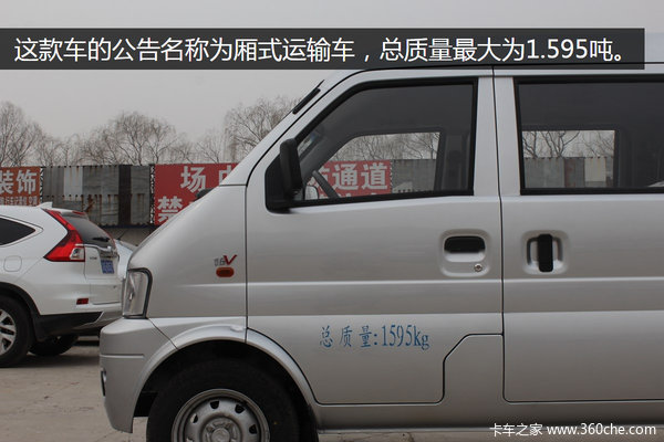 这款微面前两排可载客,准乘5人,最后一排为封闭货厢。这款车的公告名称为厢式运输车,总质量最大为1.595吨,可载货质量的空间和重量都比较小,比较适合个体经营者运货,如果需要也可将第二排座椅拆下,以增大载货空间。
