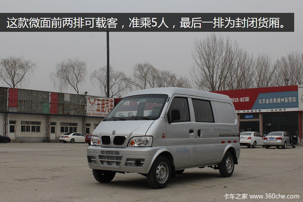 动力方面,搭载东风小康1.0L汽油发动机,满足国五排放标准,可在北京销售上牌。传动系统配五档手动变速箱。