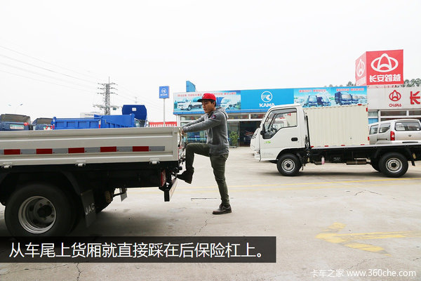 想要进入康铃X5的货厢还是相当方便的,在货厢的两侧都设置了小踏板,上下货厢借助小踏板轻松简单,而要从货厢尾部上去,则借力后保险杠,同样轻松。