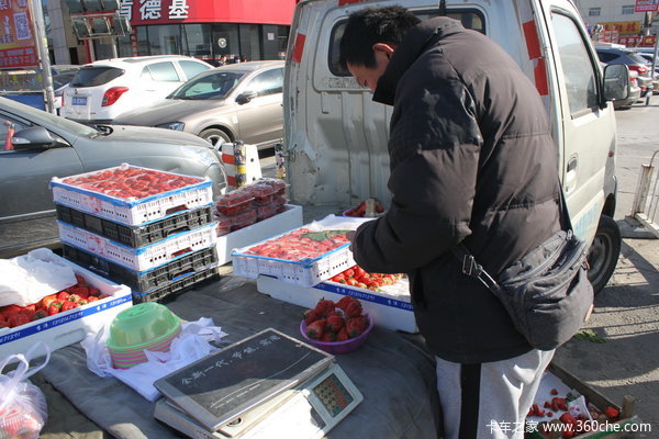 成本低,流动性好是这类微卡作为售货车的绝对优势。美中不足的是,需要承受风吹日晒之苦,炎炎烈日之下不仅人会感觉不舒服,图中这一车看起来很好吃的大草莓也很难长时间保鲜。