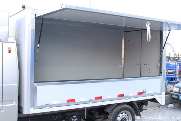 栏板车卖起货来虽然没有障碍,但是货箱开放,收摊以后必须将货物用篷布遮盖,而且防盗效果不佳,这一点无法和封闭式货箱相比。