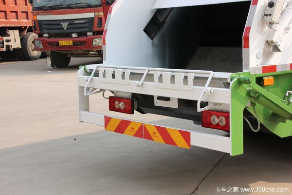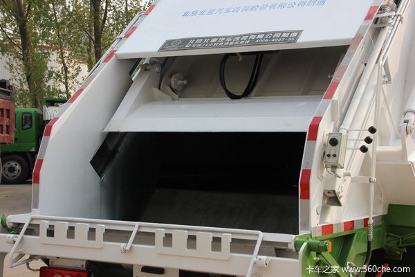 垃圾车厢体前部有卸料机构与油缸,后部有装料斗,用于装垃圾和压缩垃圾到车厢体内。