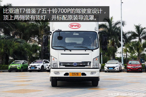 来卡车之家App【卡车之家 原创】近年来电商的发展给城市物流配送带来了压力,而同时在国家政策扶持的状态下,电动商用车的发展越发明朗清晰。比亚迪的电动乘用车相信大家也有所了解,而在商用车方面比亚迪也针对市场推出了纯电动的T3、T5、T7车型。记者走访位于深圳坪山的比亚迪总部,实拍了这台装备5.6米货厢的比亚迪T7。