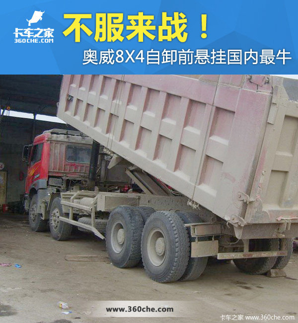 其实,奥威8X4自卸最有特色的地方是它的前悬挂,这是唯一一款采用平衡式前悬挂的国产重型卡车。