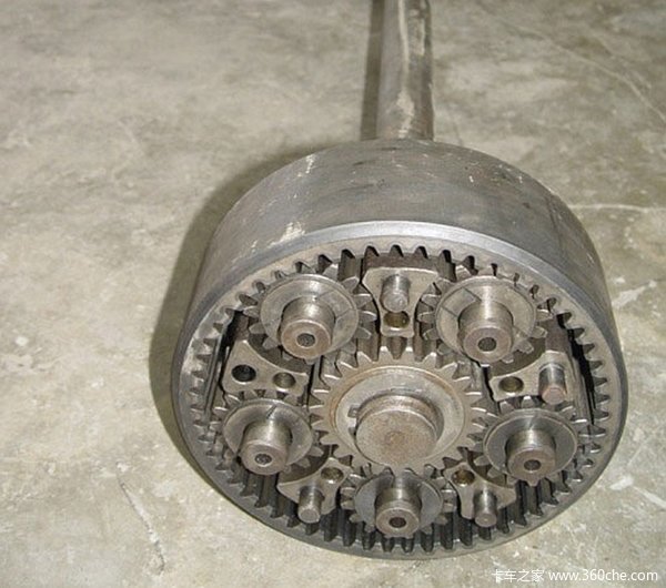 我们再将中央减速器速比1.27乘以轮边减速器的速比3.48得到的乘积就是这个轮边减速桥的速比4.42。因为轮边减速桥的这个特点,在一定范围内更改速比就只需要对轮边减速器的速比进行更换即可,而不必更换中央减速器齿轮。但需要注意的是,速比不可胡乱更改,而是需要根据实际情况来决定。