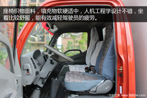 欧马可3系采用的是织物面料座椅,填充物软硬适中,人机工程学做的不错,坐着比较舒服,能有效减轻驾驶员的疲劳。座椅支持前后和靠背调整,坐垫前后可调整的范围达17厘米,基本满足了不同身材的驾驶员乘坐。