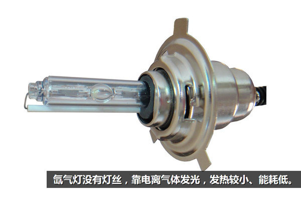 氙(xian,读一声)气大灯常常被人称作疝气大灯,它是高强度放电式气体灯,与卤素灯的发光原理完全不同,它是通过在石英灯管内填充高压惰性气体氙气,用来取代传统的灯丝,在两端电极上有水银和碳素化合物,透过安定器以上万伏的高压电流刺激氙气发光,在两极间形成白色的电弧,氙气大灯所发出的光非常接近太阳光。