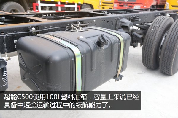 新到店的超越C500使用100L塑料油箱,容量上来说已经具备中短途运输过程中的续航能力了。