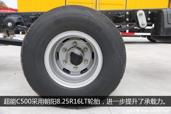 超越C500采用双钱牌轮胎,型号为8.25R16LT,进一步提升了承载力。
