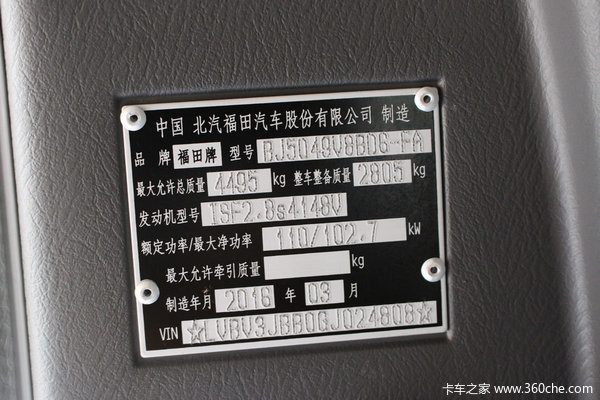 驾驶室内铭牌就是身份标识,超能版换装了ISF2.8s4148V型号发动机,2.8L排量4缸148马力。超值版则是ISF2.8s4117V型号117马力的低功率版的发动机。