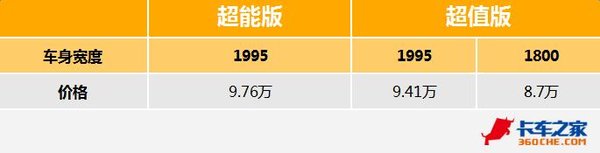 欧马可3系超值版有1800、1995两种宽度驾驶室,而超能版只有1995宽度驾驶室。1800驾驶室车型的大梁宽度也是较窄的,载重级别比不上1995版本车型,因此价格相对较低。而同样是1995车宽的欧马可3系,超能版价格比超值版高三千五。那么高出这样的价格,买超能版值不值呢?