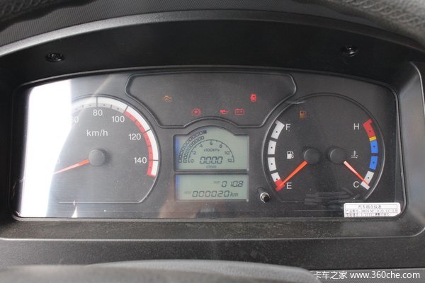 凌源的仪表是很常规,左边是时速表,右边分别是油量和水温,这都很好辨识。然后各类指示灯,在中上部集中在一起。因为驾驶室宽大,座椅坐姿势必靠后,所以把各类指示灯安置在这个位置,还是便于读取的,这里必须要给个赞。