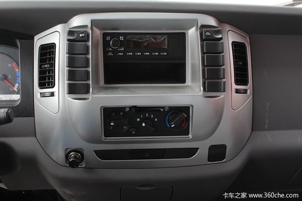 中控台的布局机械感十足,多媒体两侧的十个开关,八个是闲置的,仅有上方干燥罐加热和发动机自检两个开关,如果考虑到多媒体升级大屏,位置那是刚刚好,原车装配都收音机也有SD及AUX功能,其实已经算是厚道了。至于干燥罐加热,这功能在轻卡里似乎不多见,只能说北方出来的车还是具有一定地域特色的。