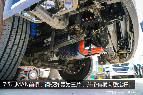 为了减轻车身自重,除了采用少片簧设计,以及铝合金油箱、该车的储气筒均为铝质材料,当然,如果选择气囊悬架车身自重就更加轻了,不过价格方面就会贵一些。