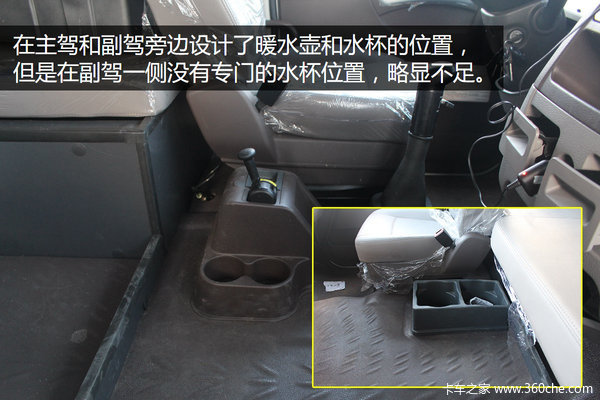 高顶双卧+低地板的结构让H7内部空间非常大,在档把旁边和和副驾旁边都设计了两个放置暖水瓶和水杯的位置,在行车过程中主驾可以随意拿取水杯,比较方便,这也是柳汽惯用的设计。但是在副驾一侧似乎没有设计放置水杯的地方,如果要从副驾一侧伸手到主驾旁边拿取水杯的话会稍显不便。