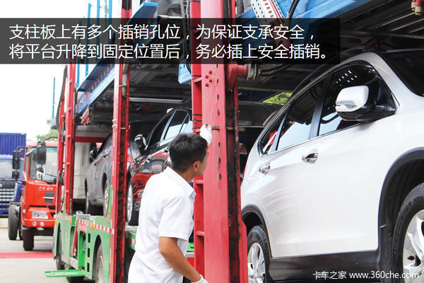 天津劳尔方面介绍说整套系统操作并不复杂,只是需要特别注意安全问题。3名技术人员其中包含1名驾驶员共同操作,在熟练的情况下能在20分钟内完成整个装车过程。想查看装卸车过程,也可点击查看图集《东风天锦中置轴轿运车 现场秀装车演示》。