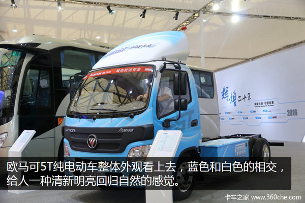 欧马可5T纯电动车整体外观看上去,蓝色和白色的相交,给人一种清新明亮回归自然的感觉。