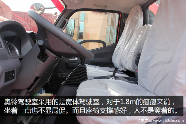 对于从事轻卡运输的司机来说,舒适度和储物空间也很重要。在舒适度方面,奥铃驾驶室采用的是宽体驾驶室,对于1.8m的瘦瘦来说,坐着一点也不显局促。而且座椅支撑感好,人不是窝着的。