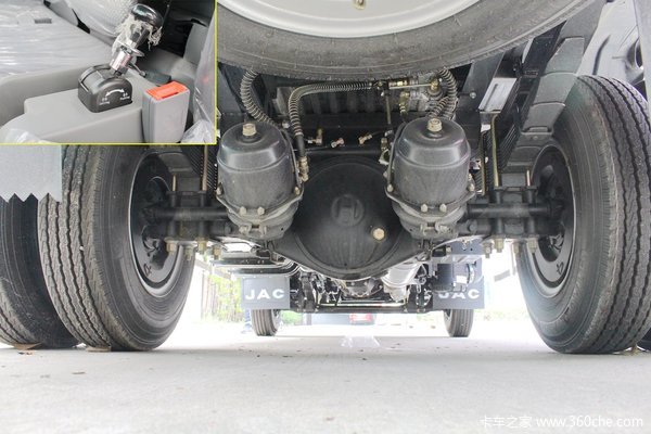 5T级后桥,速比为4.33,并带有断气刹。采用变截面板簧,前桥11片,后桥8+6片,变截面板簧可有效降低行驶噪音,重量也更轻。