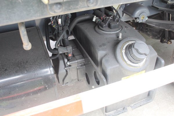 该车满足国五排放走的是SCR技术路线,尿素壶为黑色聚乙烯材质,可有效减少尿素光解。