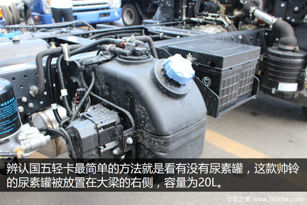 这款车与之前的国四车型相比,在外观方面并没有做出改动,最大的变化就是换装了一台锐捷特国五的发动机,还有就是在车外挂上了一个20L的尿素罐。