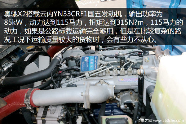 ● 底盘点评:奥驰X2的底盘还是非常扎实的,适合于重载运输,美中不足的是发动机动力太小,如果运输偏重的货物时,会感到力不从心。