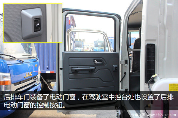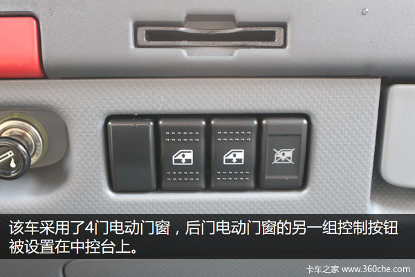 双排驾驶室乘坐5人,满足了类似市政施工、城管和电力部门的人员乘坐需求,驾驶室四个门均配备了电动升降门窗,但中控锁却没配备,这点是遗憾。该车后排座椅安装了三点式的安全带,能保障乘坐人员的安全。