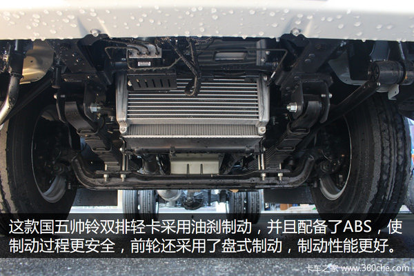 这款国五帅铃双排轻卡搭载了2.7L 156马力的发动机,再加上双排的设计,在载人和载货方面都得到一个不错的保证,对于那些市政施工、城管和电力部门之类的队伍来说,基本满足了需求。另外车辆在出厂的时候已经标配了博世的ABS系统,加上前轮配备了碟刹,保障了制动过程的安全。(文/图 陈锋传)