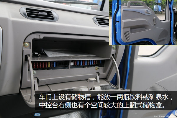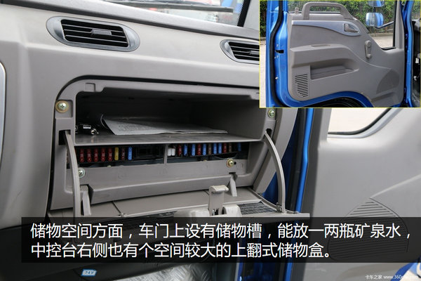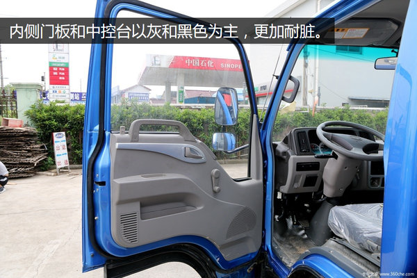 打开驾驶室,内部一般轻卡有的功能都具备,既简单又实用。内侧门板和中控台以灰和黑色为主,更加耐脏。