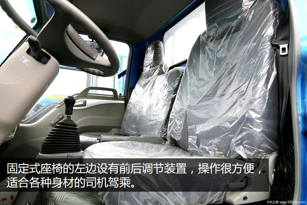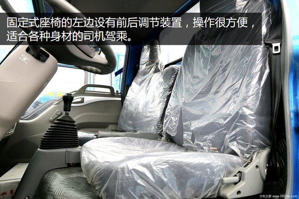 固定式座椅的左边设有前后调节装置,操作很方便,适合各种身材的司机驾乘。