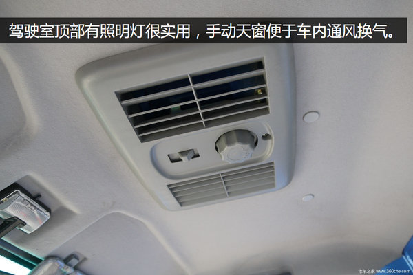 驾驶室顶部设有照明灯,很实用,手动天窗便于车内通风换气。