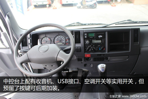 中控台上配有收音机、USB接口、空调开关等实用开关,同时预留了按键,用户可以根据自身需要选装。