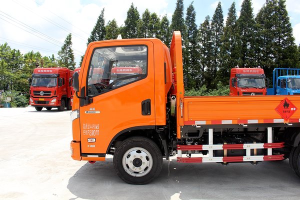 来卡车之家App【卡车之家 原创】跃进超越系列一直以来,凭借其强大的动力、超高的颜值和可靠的性能受到较多用户的青睐,其中超越C100系列更是具有车体窄,机动灵活的优势,因此被广泛运用于各种运输。近日,笔者在走访市场过程中,看到几辆定制的超越C100小型危化品车。